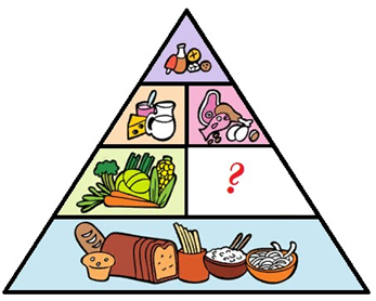 4. Посмотри на картинку и выбери то, чего не хватает в пирамиде правильного питания