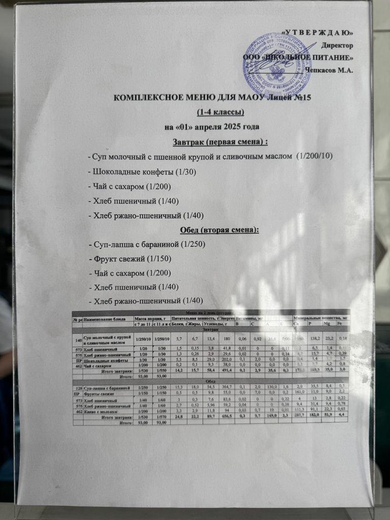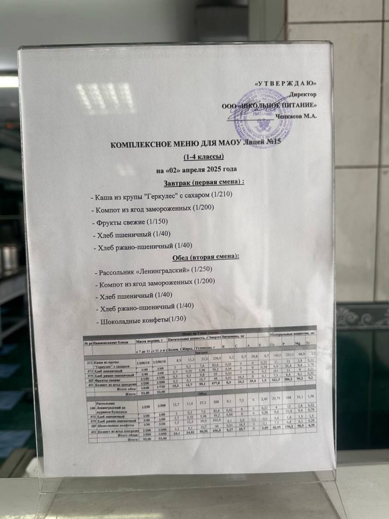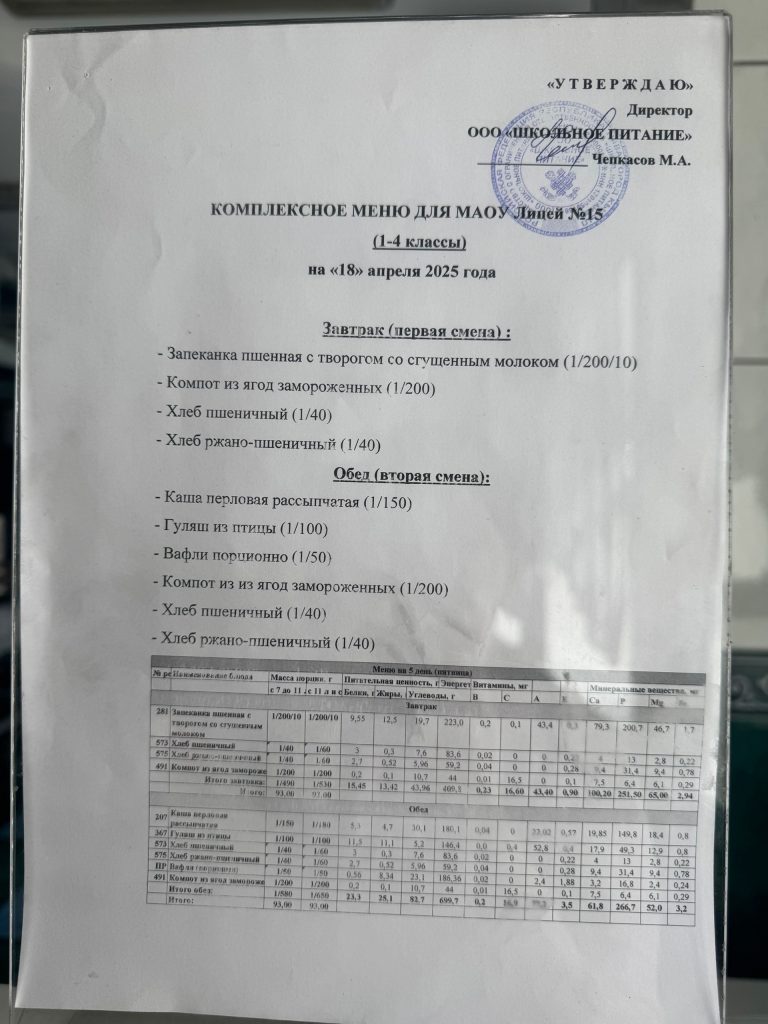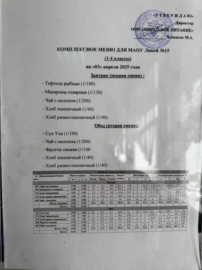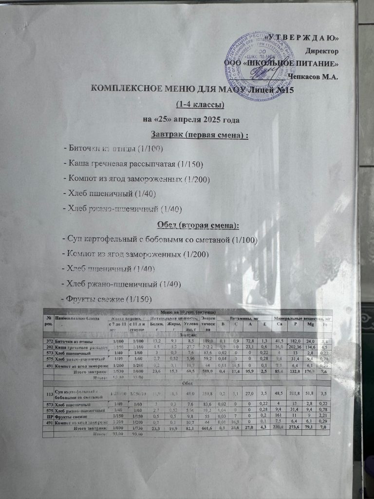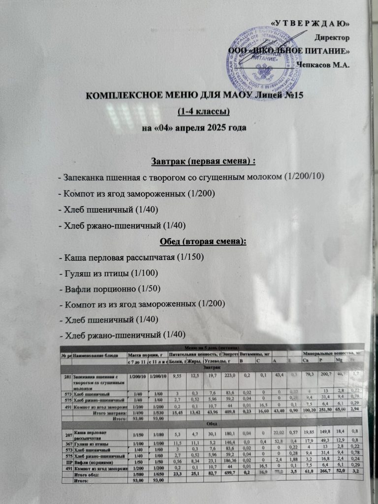 Меню — АПРЕЛЬ 2025 года