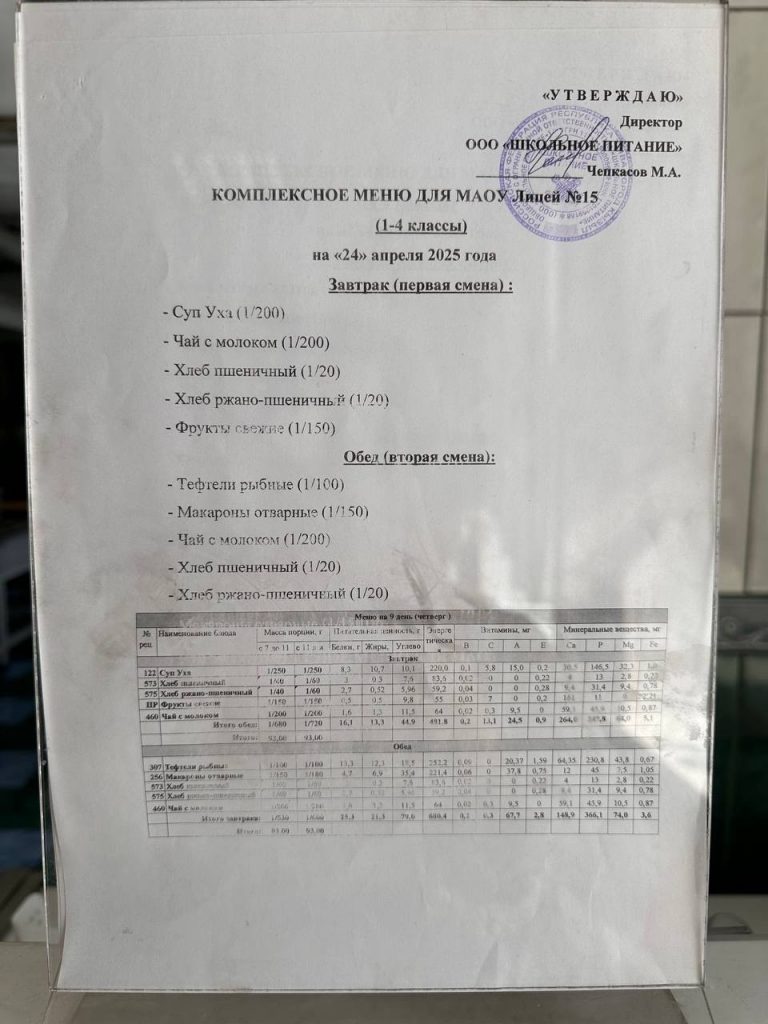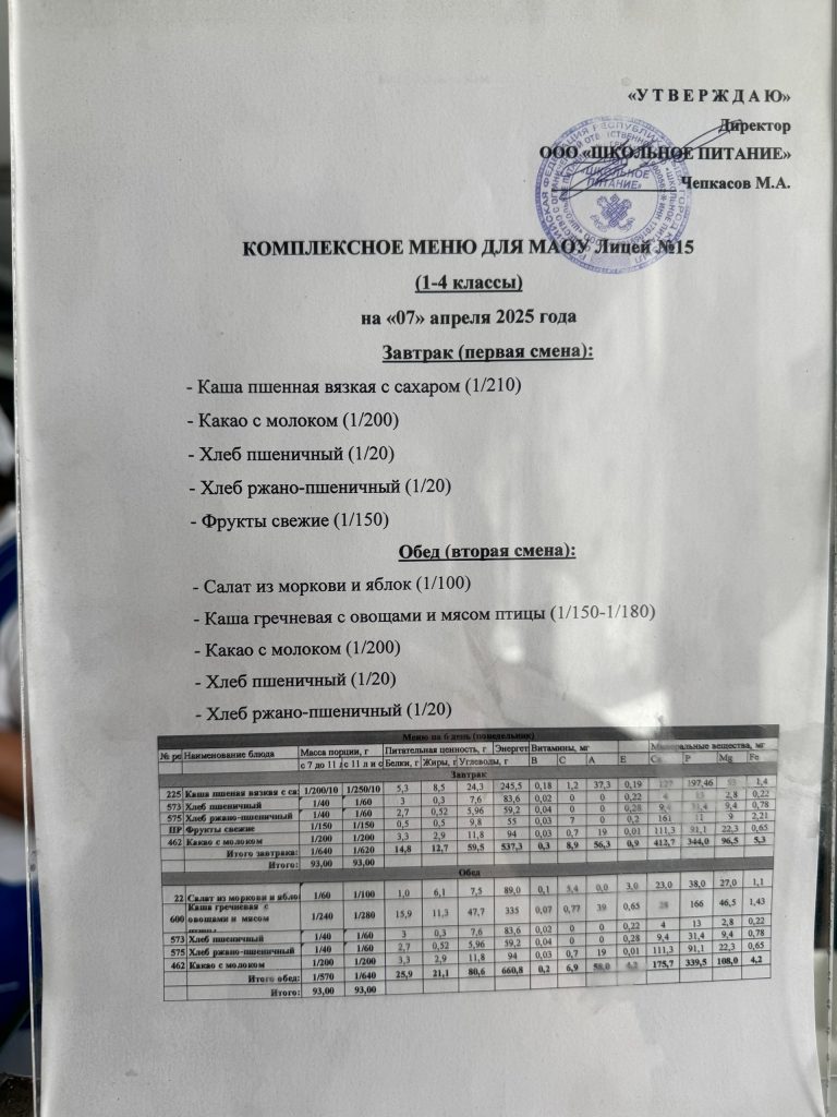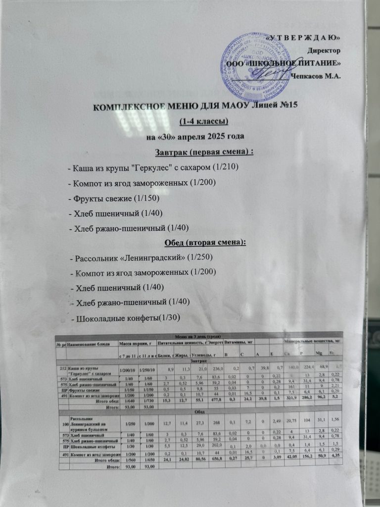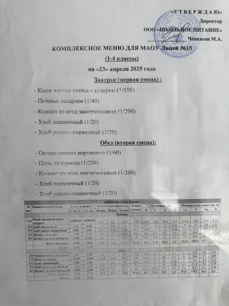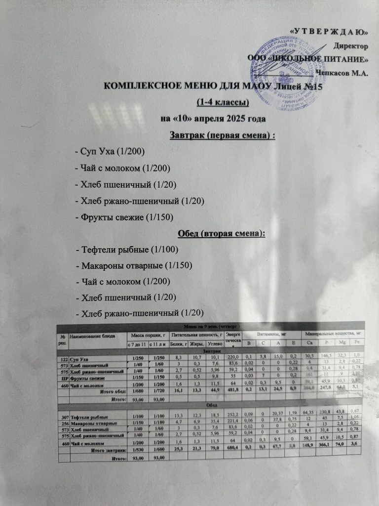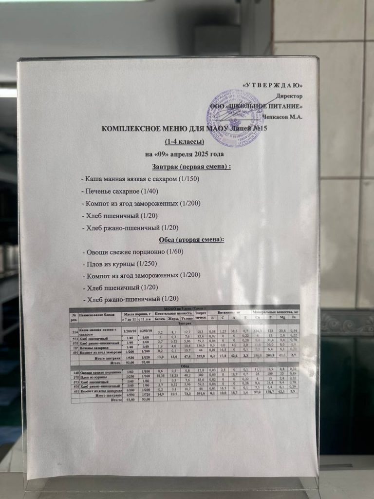 Меню — АПРЕЛЬ 2025 года