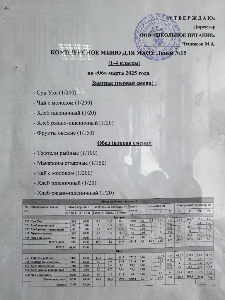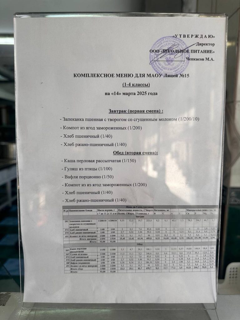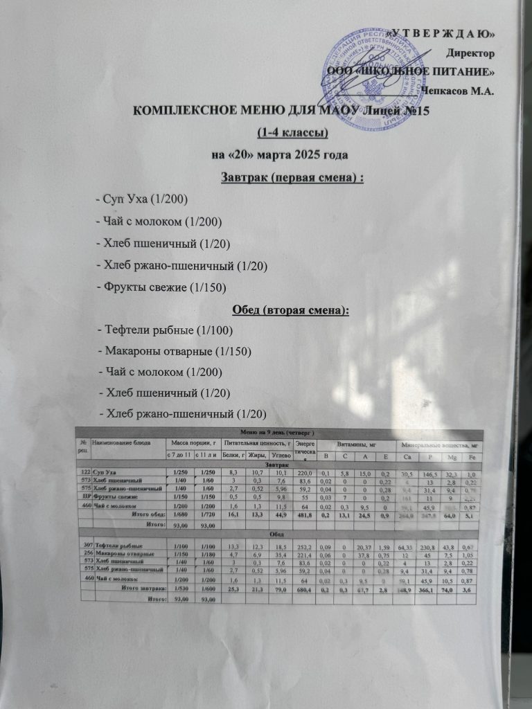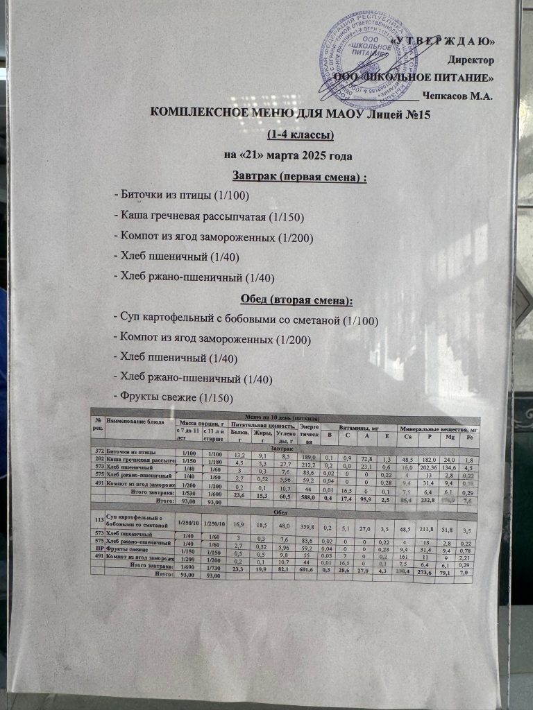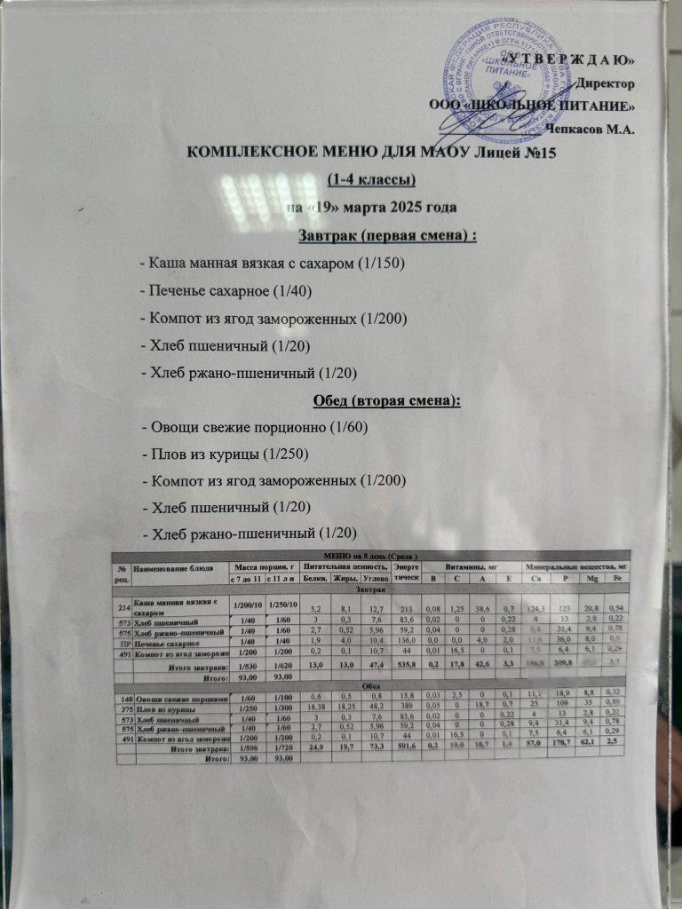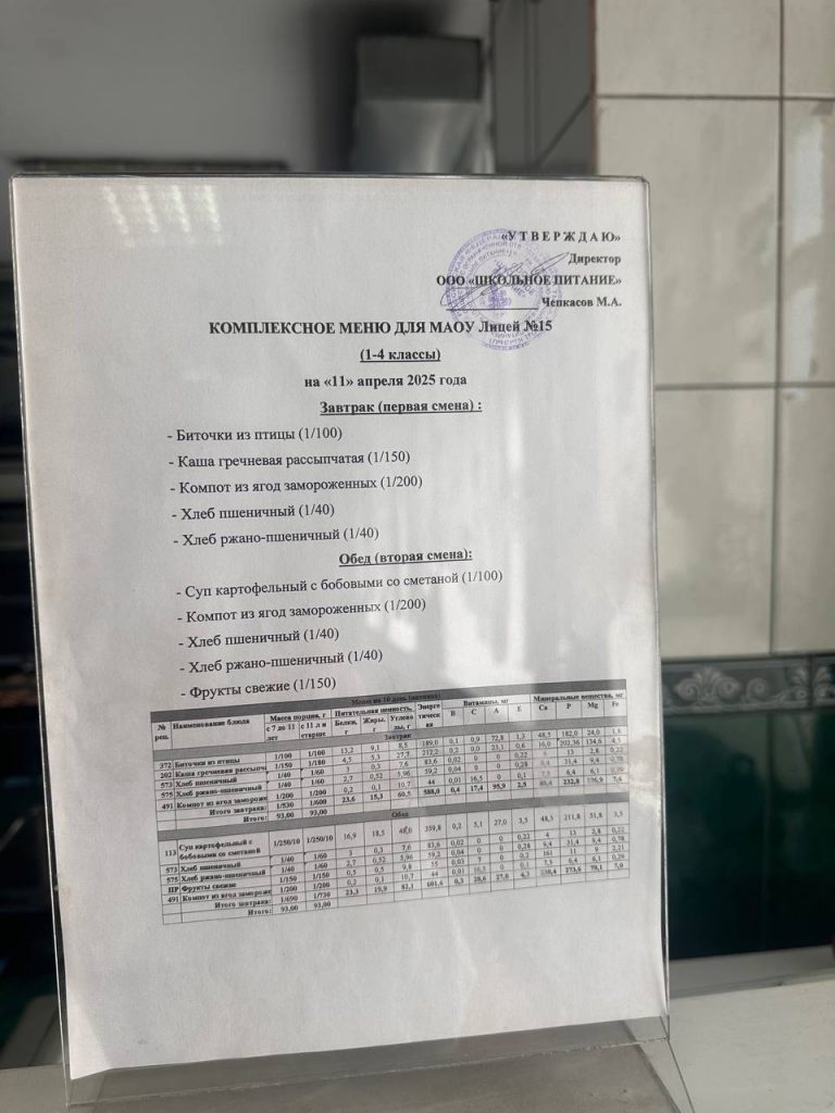 Меню — АПРЕЛЬ 2025 года