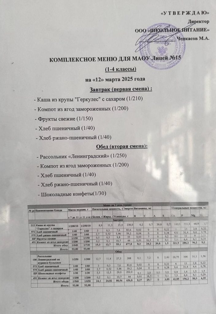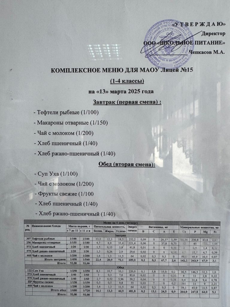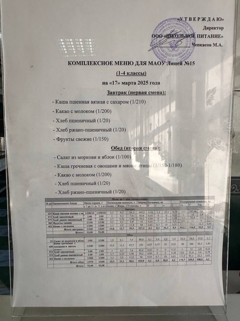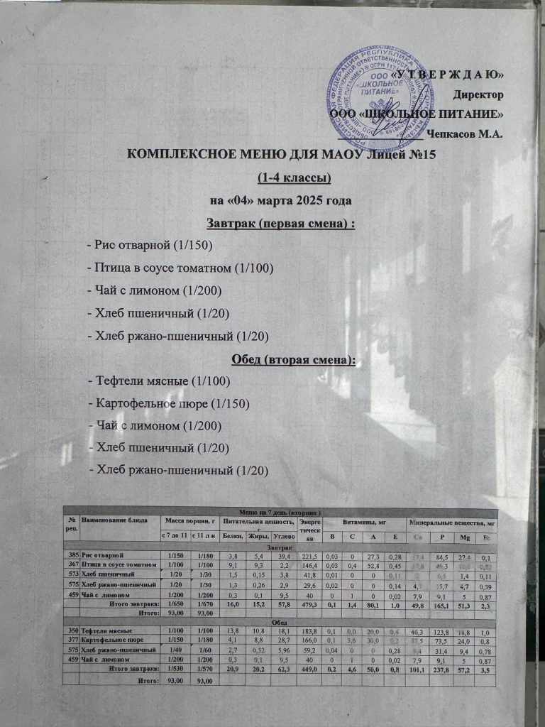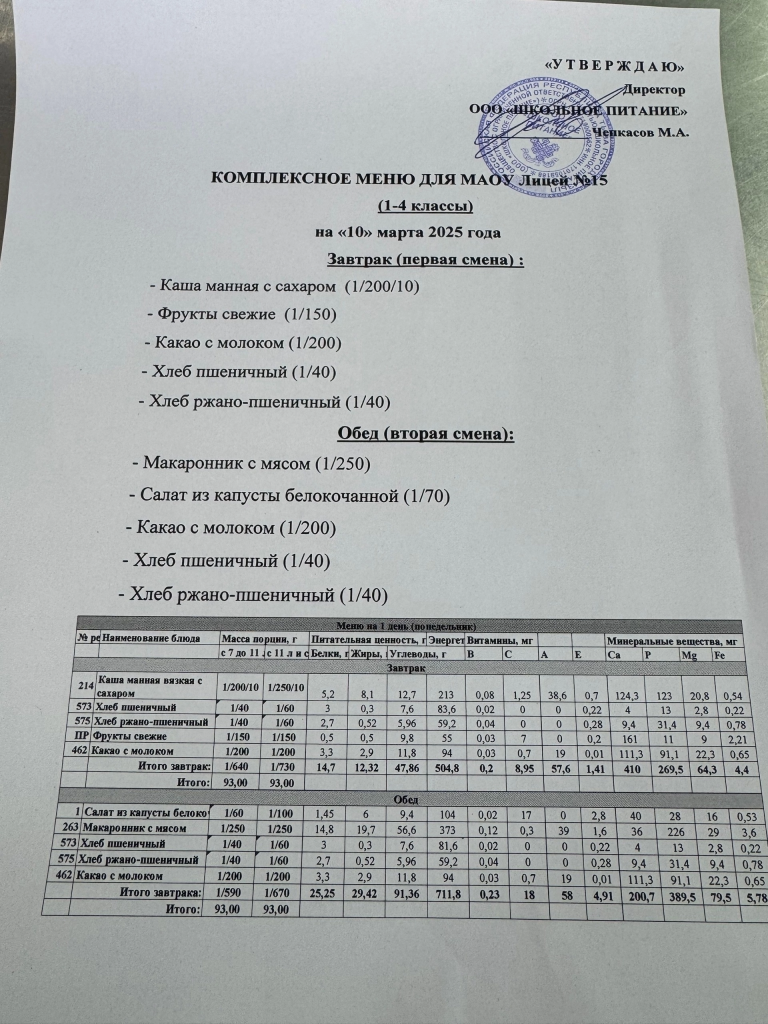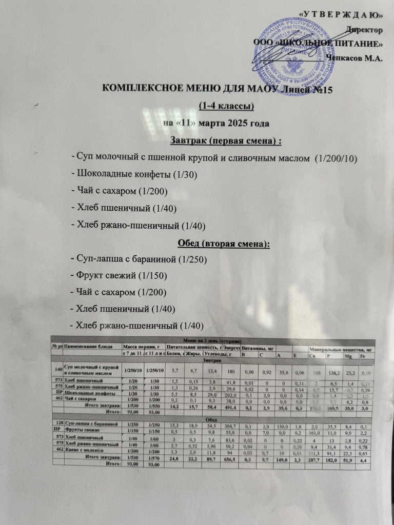 Меню — АПРЕЛЬ 2025 года