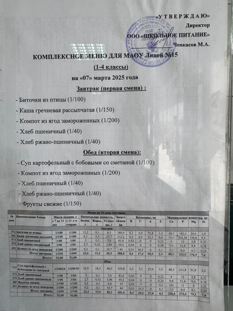 Меню на 7 Марта