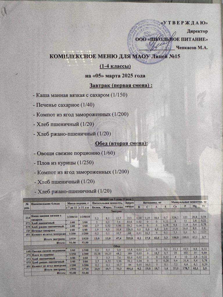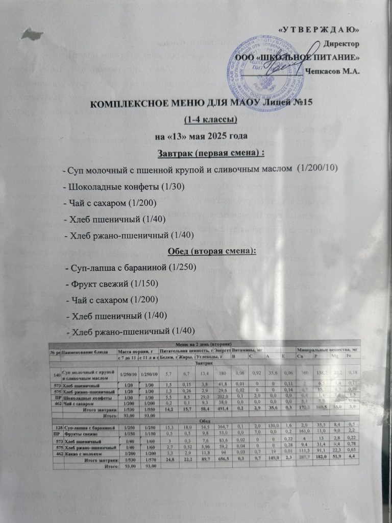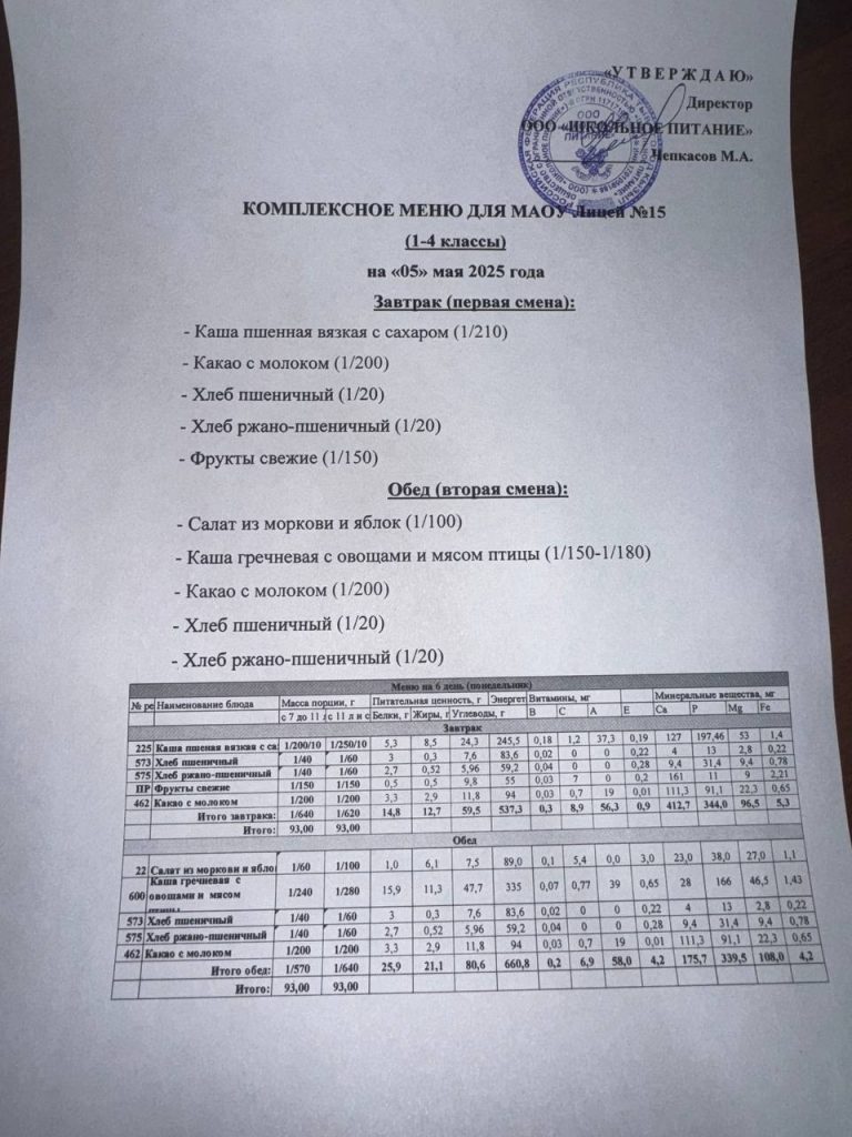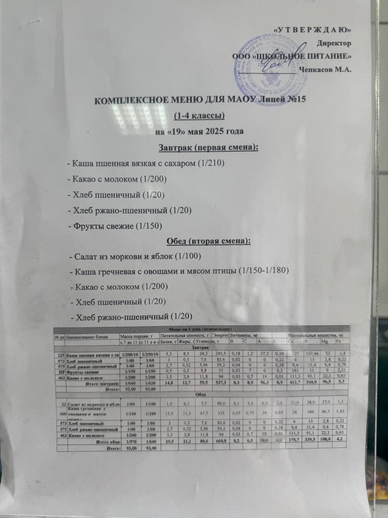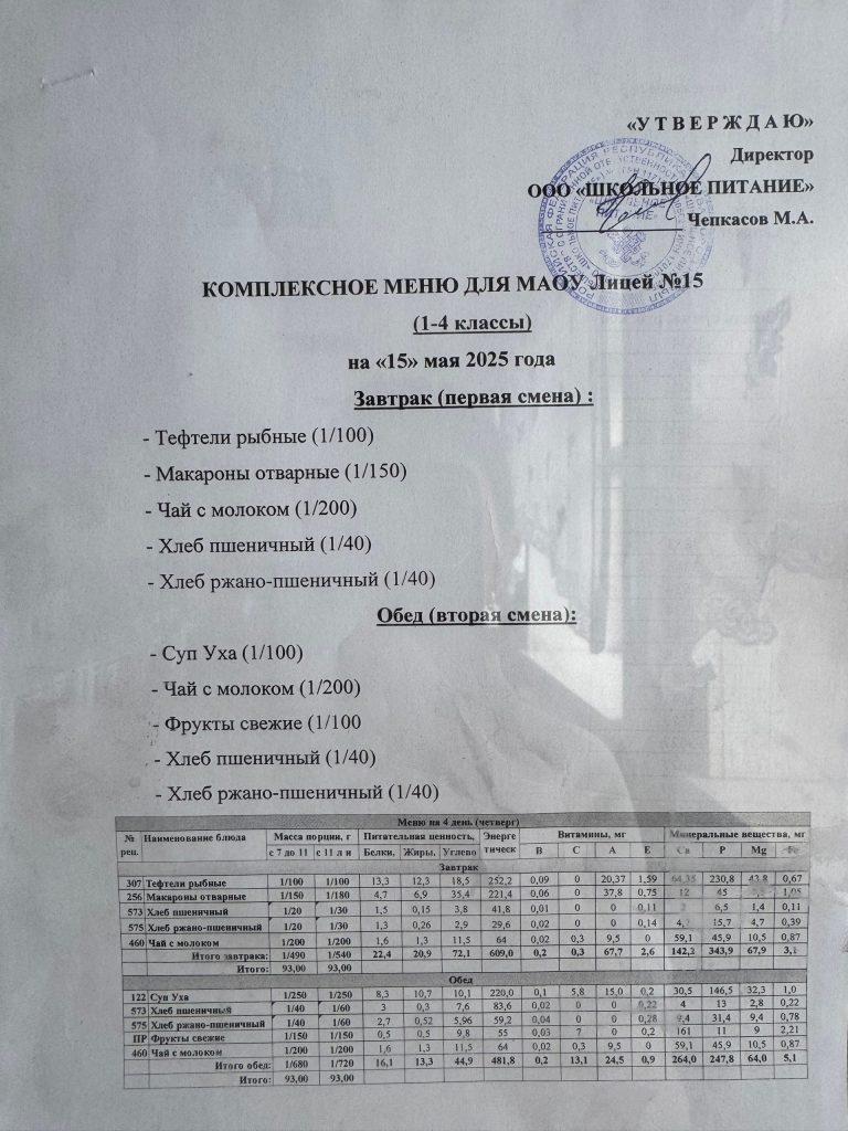 Меню на 15 мая