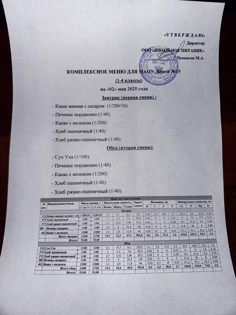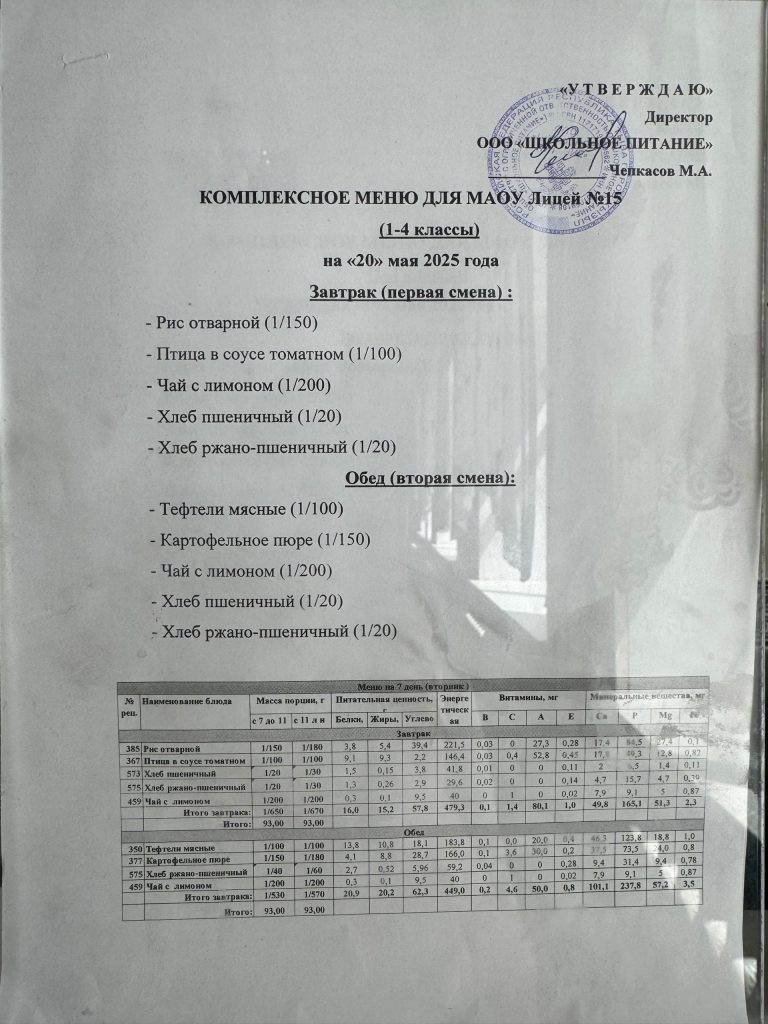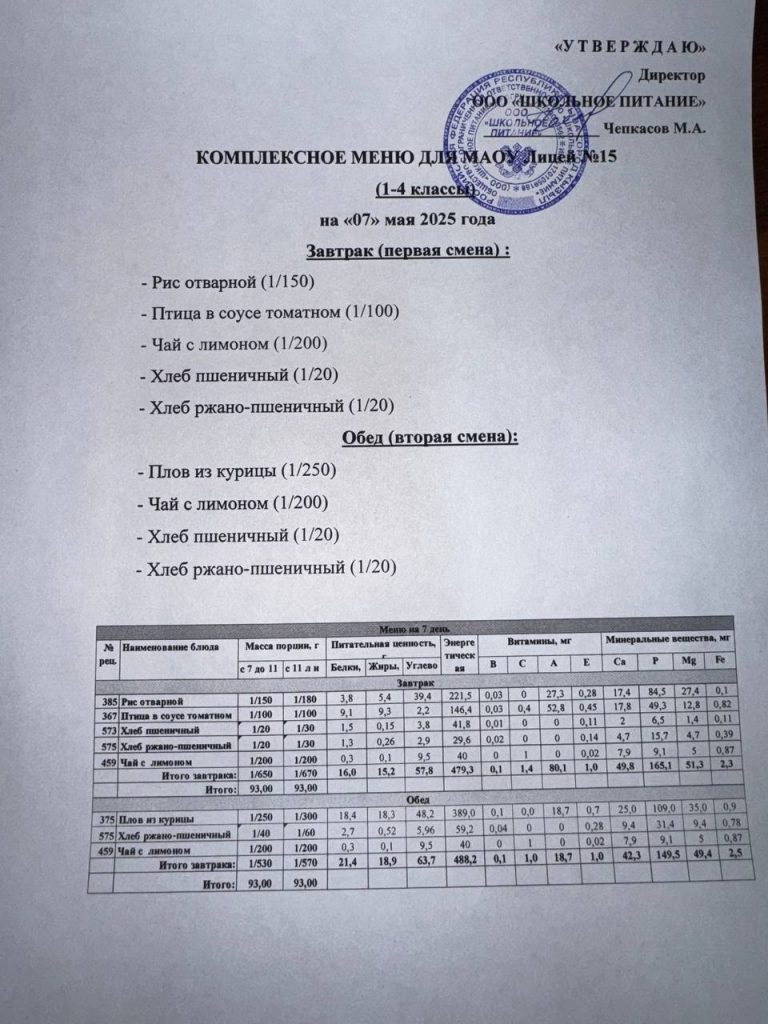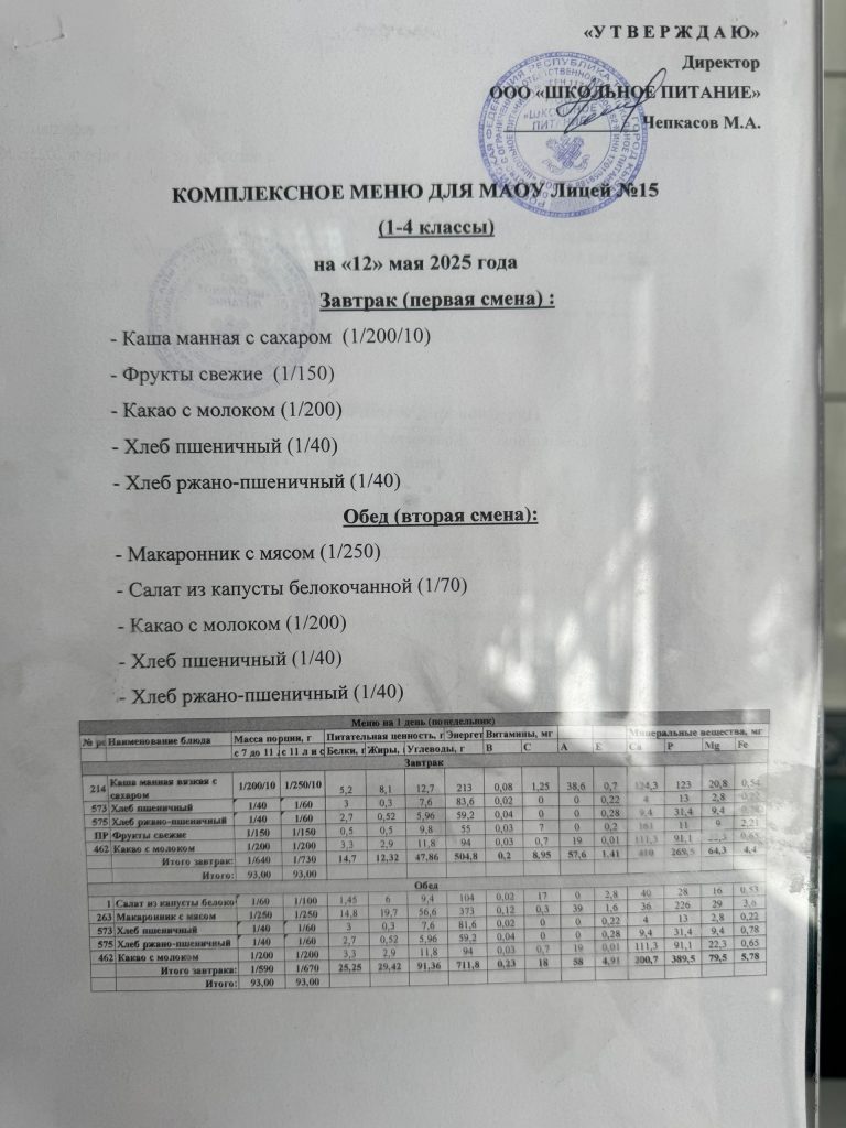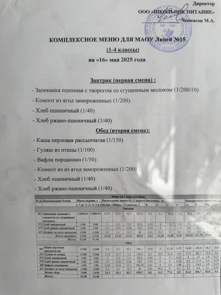 Меню на 15 мая