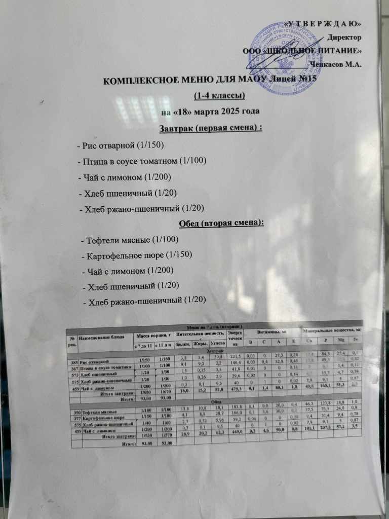 Меню на 18 марта