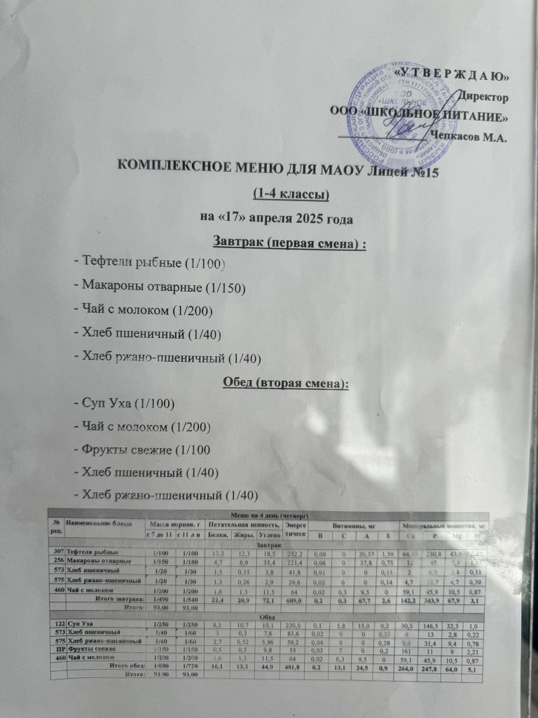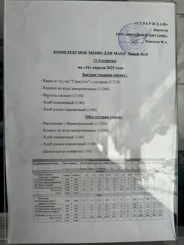 Меню на 16 апреля
