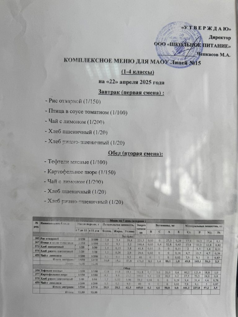 Меню на 22 апреля